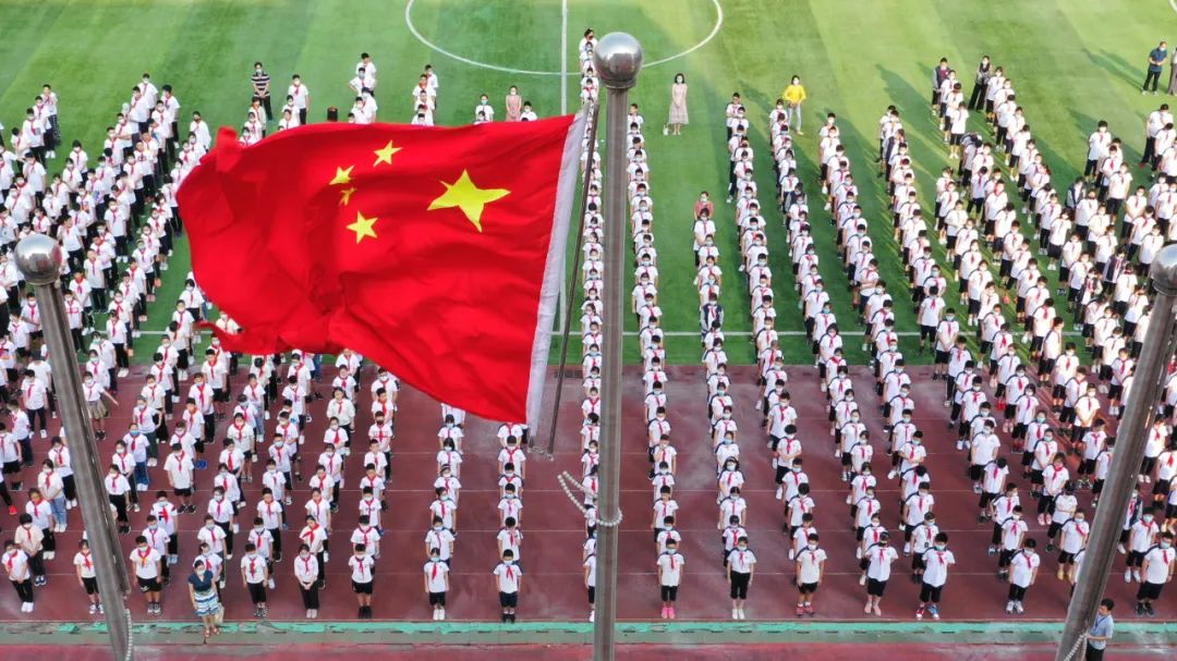 2020年9月1日,湖北省中小学幼儿园如期开学,湖北省水果湖第一中学1200多名学生参加升国旗仪式(湖北日报全媒记者 陈勇 摄)