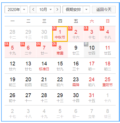 2020年中秋国庆节