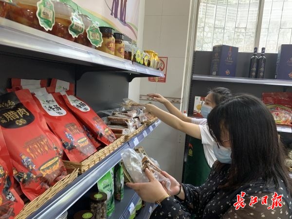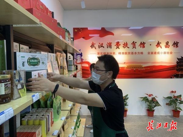 武汉消费扶贫馆·武昌馆工作人员在整理农副产品。 记者谭德磊 摄