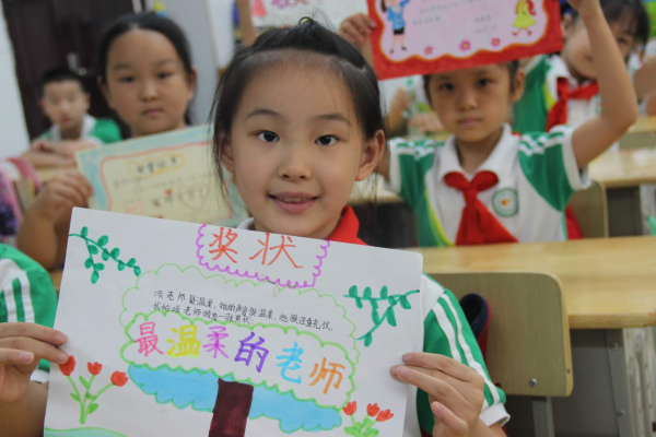 长江网9月9日讯“我最爱的许老师,你比我妈妈还温柔,我会永远爱您哟!”光谷实验小学的老师们,在教师节来临之际,都收获了一份特殊的礼物——一张张由学生亲手制作的定制款表白“奖状”。