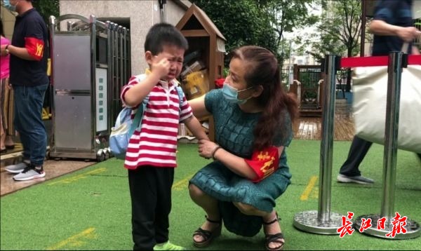 14日周一,孩子们在家度过了一个周末,重新回到幼儿园又有些不适应,尤其是刚上小班的宝宝们,仍有一部分入园时哭个不停。早上8时,玫瑰第二幼儿园小二班希希小朋友刚到门口就哭了起来,老师们见状赶紧上前牵起孩子的手,并示意孩子奶奶尽快离开。