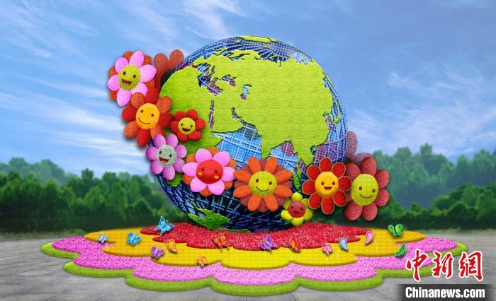 西单西北角“命运共同体”主题花坛效果图。北京市园林绿化局供图