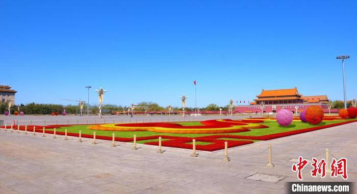 天安门广场两侧绿地则延续吉祥如意花带的布置方式,花卉布置总面积将达4900平方米,共摆放花球18个。