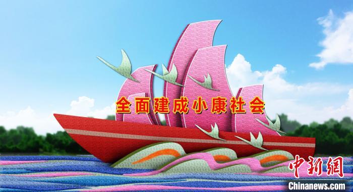 ——建国门西北角布置“全面小康”花坛:花坛顶高9米,以乘风破浪的帆船为主景,镶嵌“全面建成小康社会”内容,寓意夺取全面建成小康社会的伟大胜利。