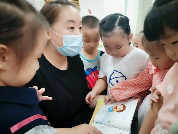 黄陂区直机关幼儿园教师彭程带着孩子们看书讲故事。 通讯员 供图