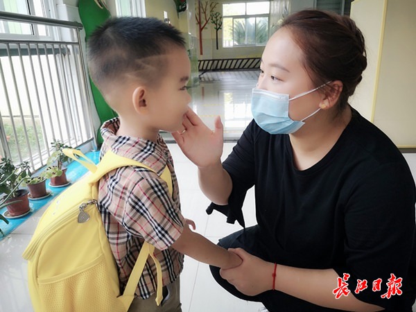 在黄陂区直机关幼儿园,小(5)班教师彭程每天早上准时出现在幼儿园门口。班里30个孩子,进幼儿园的第一件事就是和彭老师拥抱。