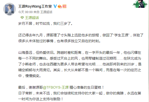 王源工作室成立3周年