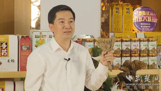 武穴市委副书记、市长陈风为佛手山药系列产品代言。(通讯员供图)