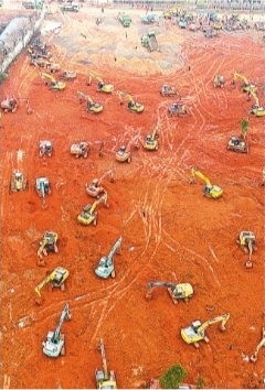 24500名建设者闻讯而来,2000台(套)机械设备及车辆参与,各参建单位不计成本,听从统一指挥,密切配合。