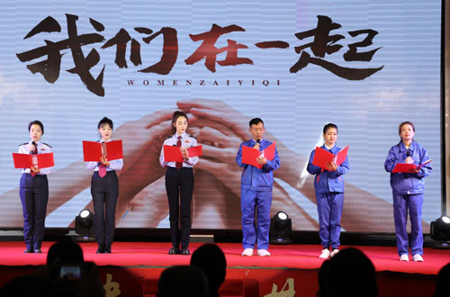 长风破浪新时代,创新发展共筑梦。为了庆祝中华人民共和国成立71周年,继往开来,讴歌中华民族实现伟大复兴中国梦的奋斗历程,展示税务干部和企业职工不忘初心、牢记使命、践行宗旨、服务社会的良好形象,进一步推动党建税企联建向纵深发展,开启税企党建联建“红蓝”力量新篇章,9月21日,国家税务总局扎兰屯市税务局携同呼伦贝尔东北阜丰生物科技有限公司开展了以“同心强党建共筑中国梦”为主题的税企迎庆十一诗词诵读大会。扎兰屯市税务局100余名税务干部与呼伦贝尔东北阜丰生物科技有限公司600余名企业职工参加此次活动。