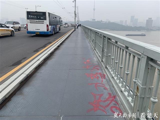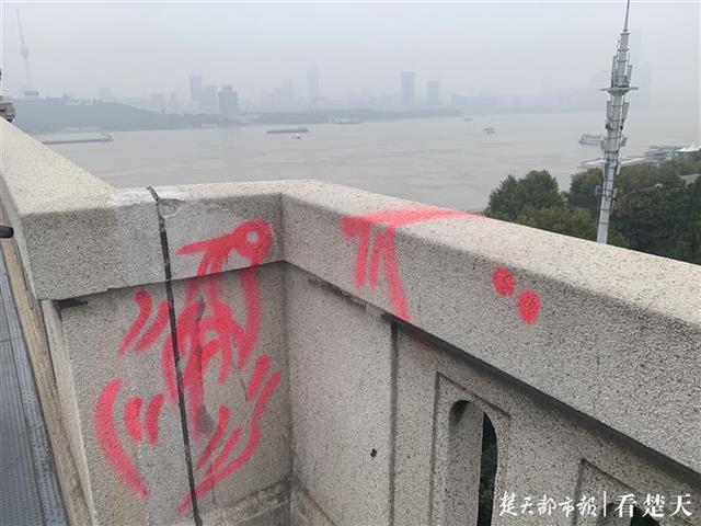 武汉长江大桥建成于1957年,于2013年列入国家保护文物单位。此前,媒体曾多次报道,大桥护栏被游客涂鸦,之后由城管等部门组织人员涂油漆修复。记者看到,桥上护栏大部分比较整洁,没有涂鸦的字样,只有人行道上这几处涂鸦比较扎眼。记者随后向城管部门反映了此事,工作人员称将转给责任部门处理。