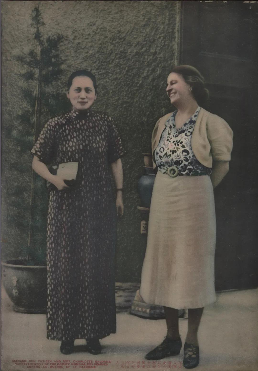 1938年宋庆龄与国际反侵略大会特使、英国援华委员会代表何登夫人的合影。