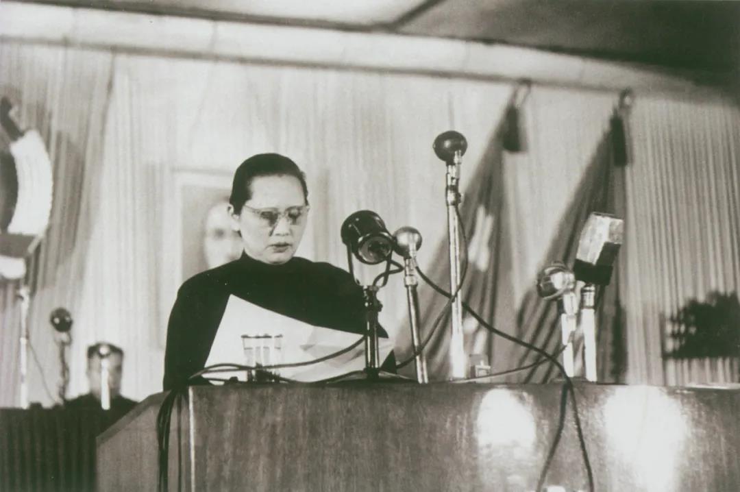 1949年宋庆龄在中国人民政治协商会上讲话。