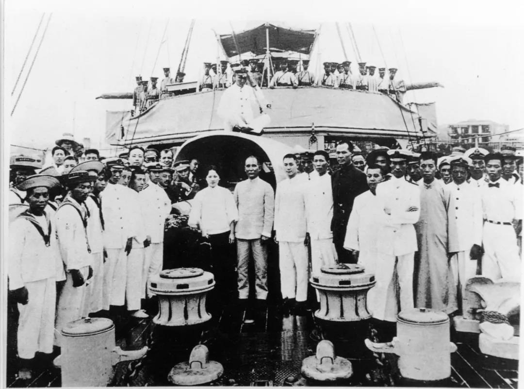 1923年孙中山与宋庆龄在永丰舰上的合影。