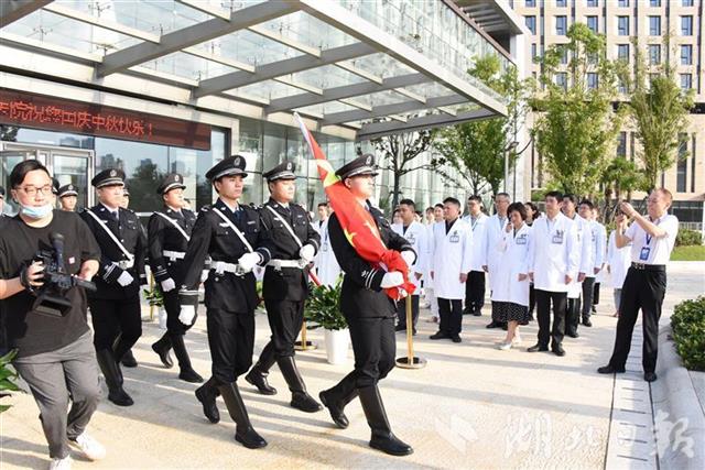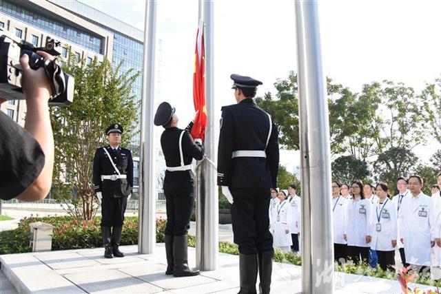 湖北日报讯(通讯员严珑)10月1日清晨,泰康同济(武汉)医院隆重举行了国庆升旗仪式,不仅在院医务人员参加了仪式,一些住院患者与附近居民也闻讯赶到升旗现场,大家一起齐唱国歌,表达对祖国母亲71岁生日的美好祝福。
