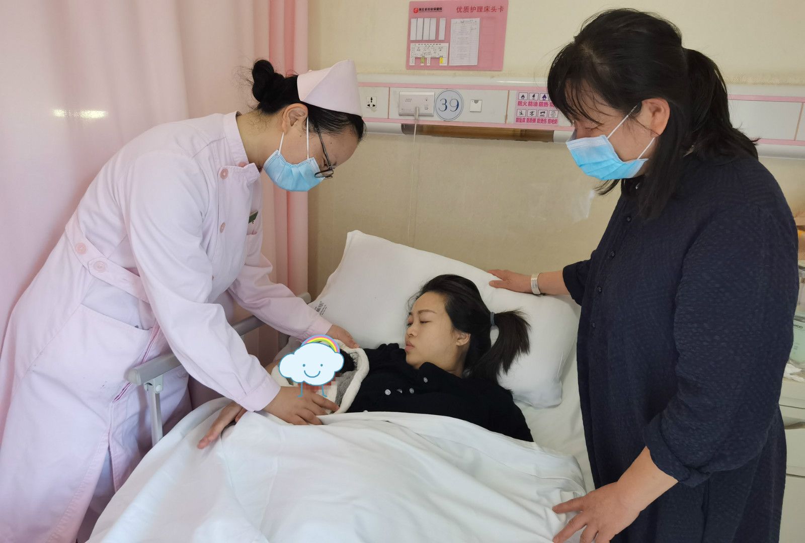 护士把国庆宝宝送到新妈妈怀里。湖北省妇幼保健院提供