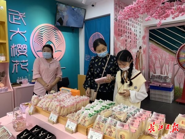 顾客选购武大樱花饼。 记者谭德磊 摄