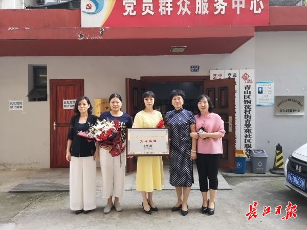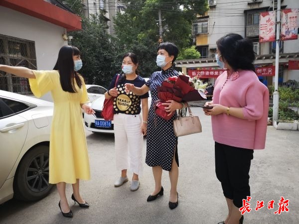 一下车,青翠苑社区书记倪萍就捧着一大束鲜花迎了出来。她和孙英是老熟人,疫情防控期间多次视频通话。在社区党群服务中心门口,倪萍对孙英说:“就像是自己的家人回来了一样。”