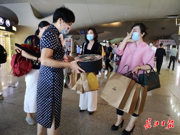 长江网10月2日讯(记者覃柳玮)10月1日上午11时,高铁准时抵达武汉站,青山区行政审批局办工作人员张军丽见到了常州母女孙英、朱书阳。疫情防控期间,母女俩和朋友们克服各种困难,搭起江苏到湖北的爱心桥,为湖北省311个社区共捐赠了价值150多万元的防控物资。第一次见面,大家都很激动,拥抱在一起,眼泪止不住地流下来。孙英说:“这不是相遇,这是我们和武汉朋友们的重逢。”