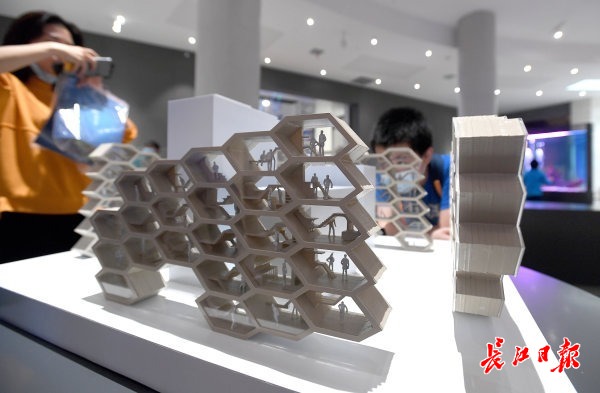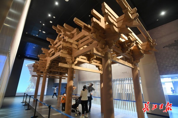 中国建筑科技馆展陈面积约6000平方米,古代建筑展厅可亲手体验古人智慧,包括能抵抗10级地震顶天立地的斗拱榫卯结构,“中国第一塔”——佛宫寺释迦塔(应县木塔);荆楚建筑展厅展示了湖北建筑独有的融合四方特点,以及武汉现存的哥特式基督教教堂、罗马式天主教教堂、拜占庭式东正教堂、伊斯兰风格的清真寺等“中西杂糅”建筑;现代建筑展厅集体验感和互动性于一体,似星河瀑布般的透光材料让你沉浸其中;未来建筑展厅的布展形态充满奇异的未来感,四周陈列着未来建筑理念的模型,跟着它们一窥建筑师们的奇思妙想,不论是行走城市、空中城市、水中城市还是插入城市都让人对未来生活环境无尽遐想。(记者周超 摄影报道)