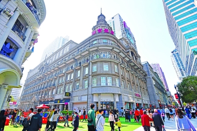 10月8日,国庆假期最后一天天气晴好,整修一新的江汉路步行街上人头攒动。记者詹松 摄