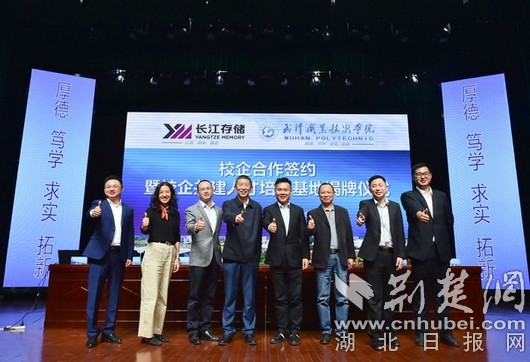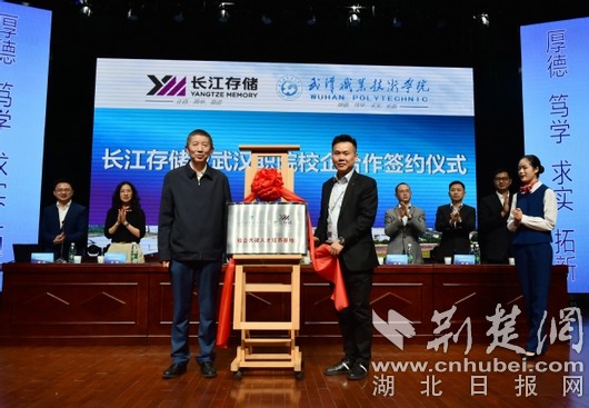 荆楚网客户端——荆楚网消息(记者许文秀 通讯员袁昌宁)10月12日,记者从武汉职业技术学院获悉,上周五,该校与长江存储科技有限责任公司(以下简称长江存储)校企合作签约暨校企共建人才培养基地揭牌仪式在该校德礼堂举行。