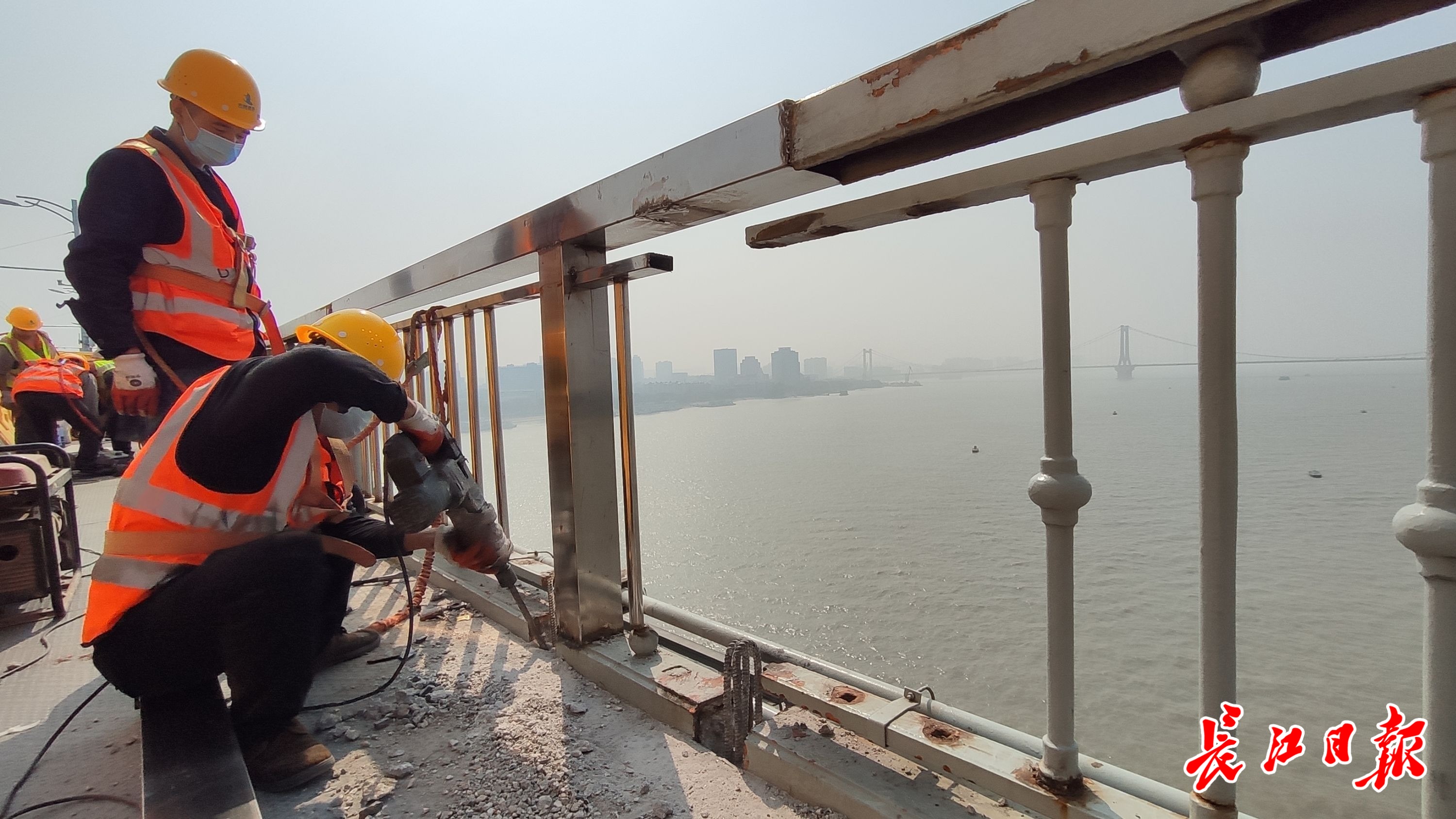 长江网10月12日讯 10月12日,长江网记者在武汉长江大桥汉阳往武昌一侧人行通道看到,今年5月被撞损的大桥护栏周边,摆放了黄色围挡,施工人员已进场,开始对撞损部位进行修缮。整个修复工程预计需要7天时间。(记者李子云 摄影报道)