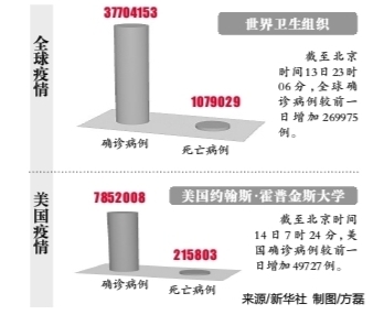 据美国约翰斯·霍普金斯大学的统计数据,截至美国东部时间12日晚,美国累计确诊病例超过780万例,累计死亡病例超过21.4万例。