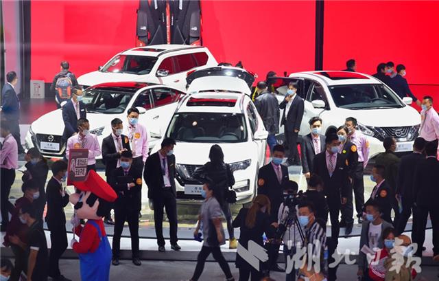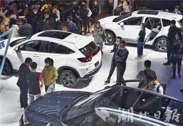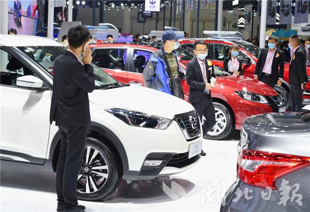 2020年10月15日,第二十一届武汉国际汽车展览会在武汉国际博览中心开幕。本届武汉国际车展展出面积10万平方米,有150余家品牌、近400家参展商参与,吸引众多市民前往选购咨询心仪车型。经受了这次疫情的考验后,武汉汽车产业正在复苏。(湖北日报全媒记者 倪娜 摄)