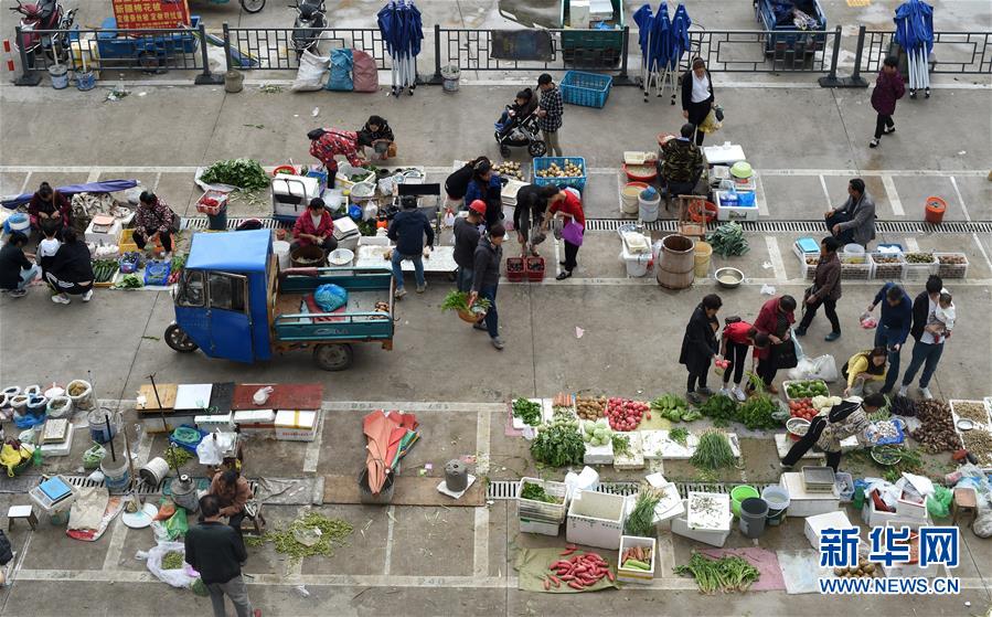 10月17日,诸暨市民在新安佳园农产品自产自销点买菜。 今年6月起,浙江省诸暨市综合行政执法局在城区选址增设新安佳园等3处农产品自产自销点,并由执法队员和城管志愿者进行规范管理,满足周边农户农产品销售需求的同时消除占道经营隐患。 新华社记者 韩传号 摄