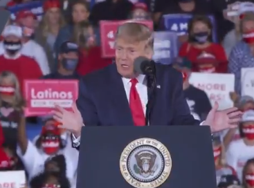 尽管自己在半个月前确诊感染了新冠病毒,他还是嘲笑民主党候选人拜登竞选活动强调社交距离和口罩。