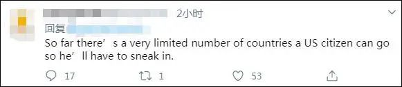 然而,在疫情中挣扎的美国网友立即指出:“到目前为止,美国公民能去的国家非常有限,所以他只能偷偷溜进去。”