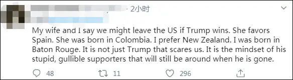 “要是特朗普赢了,我和我妻子也许要离开美国。”