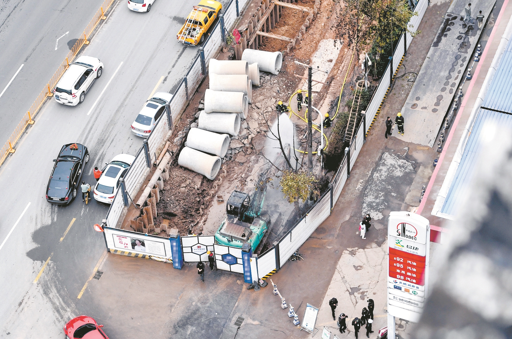 昨日早晨,武昌区友谊大道三角路社区附近一处市政建设工地上,相关单位在进行供水管漏水检修过程中,不慎挖破一处燃气管,造成天然气泄漏,并引发燃烧。事故造成附近居民停气、停电,相邻加油站设施受损,所幸未造成人员伤亡。中石化董家墩加油站站长甘泉得知消息后,从接亲路上紧急赶到现场处置险情。目前,相关部门正对事故原因展开调查。