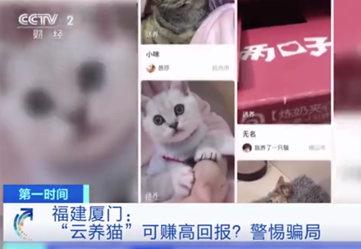 3、云养猫群里除了受害者都是骗子 今年8月,福建厦门张女士接触到“某喵”的App,客服说,在网上云养猫可以收到高额回报。张女士添加了对方微信后,随即被拉进一个微信群。到了9月底,张女士突然发现不仅“某喵”App打不开了,自己还被踢出了原先加入的微信群。张女士发现,自己投入的1.7万元全部打了水漂。警方称,在群里侦查发现,除了受害者以外,其他都是骗子。(@央视新闻)