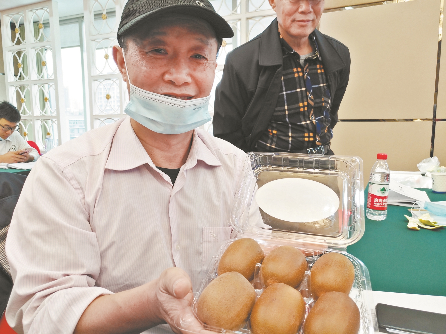 农户展示自种的猕猴桃