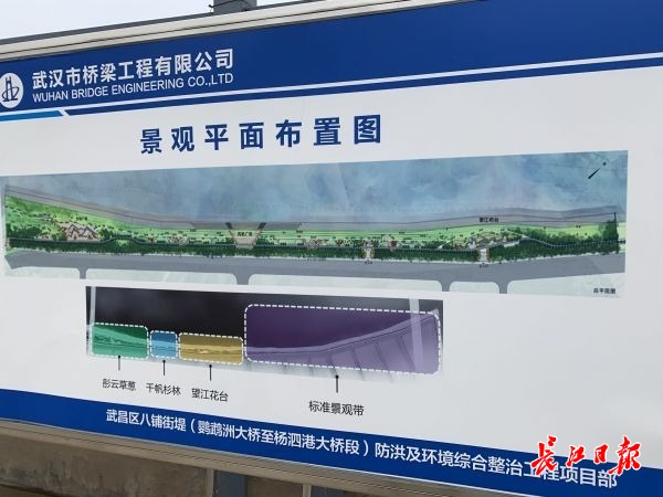 据悉,该工程将在明年汛期前完工。届时,市民将看到一个升级版的江滩公园。“彤云草葱区、千帆杉林区、望江花台区和标准景观带等景观分区也会在第一时间与大家见面。”