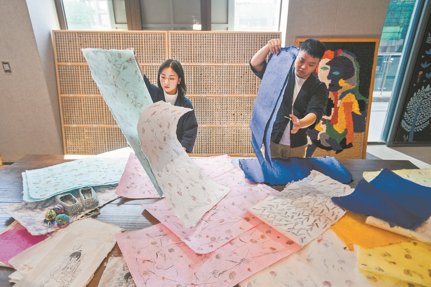 但传承之余亦有创新,受力均匀的千斤顶替代石头压纸,花草装扮纸让年轻人更容易接受和喜爱。