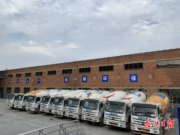 当天下午,记者走进中建商砼青山预拌厂,厂区很少见到生产扬尘,无轰鸣噪声,路面干净整洁,绿植错落有序。一辆辆混凝土罐车驶入厂区,首先喷淋“洗个澡”,再有序停放,等待装车。