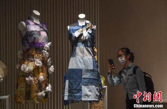 10月22日,参观者观看展出的旗袍作品。近日,“如诗:2020全球旗袍邀请展”在位于浙江杭州的中国丝绸博物馆举行,展览以“诗歌”为主题,共邀请全球多个国家及地区的设计师制作四十余件旗袍作品。中新社记者 王刚 摄