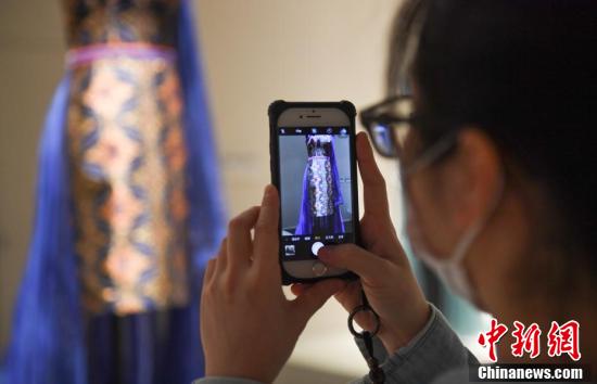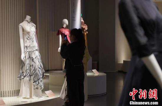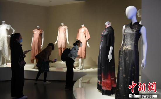 10月22日,参观者观看展出的旗袍作品。近日,“如诗:2020全球旗袍邀请展”在位于浙江杭州的中国丝绸博物馆举行,展览以“诗歌”为主题,共邀请全球多个国家及地区的设计师制作四十余件旗袍作品。