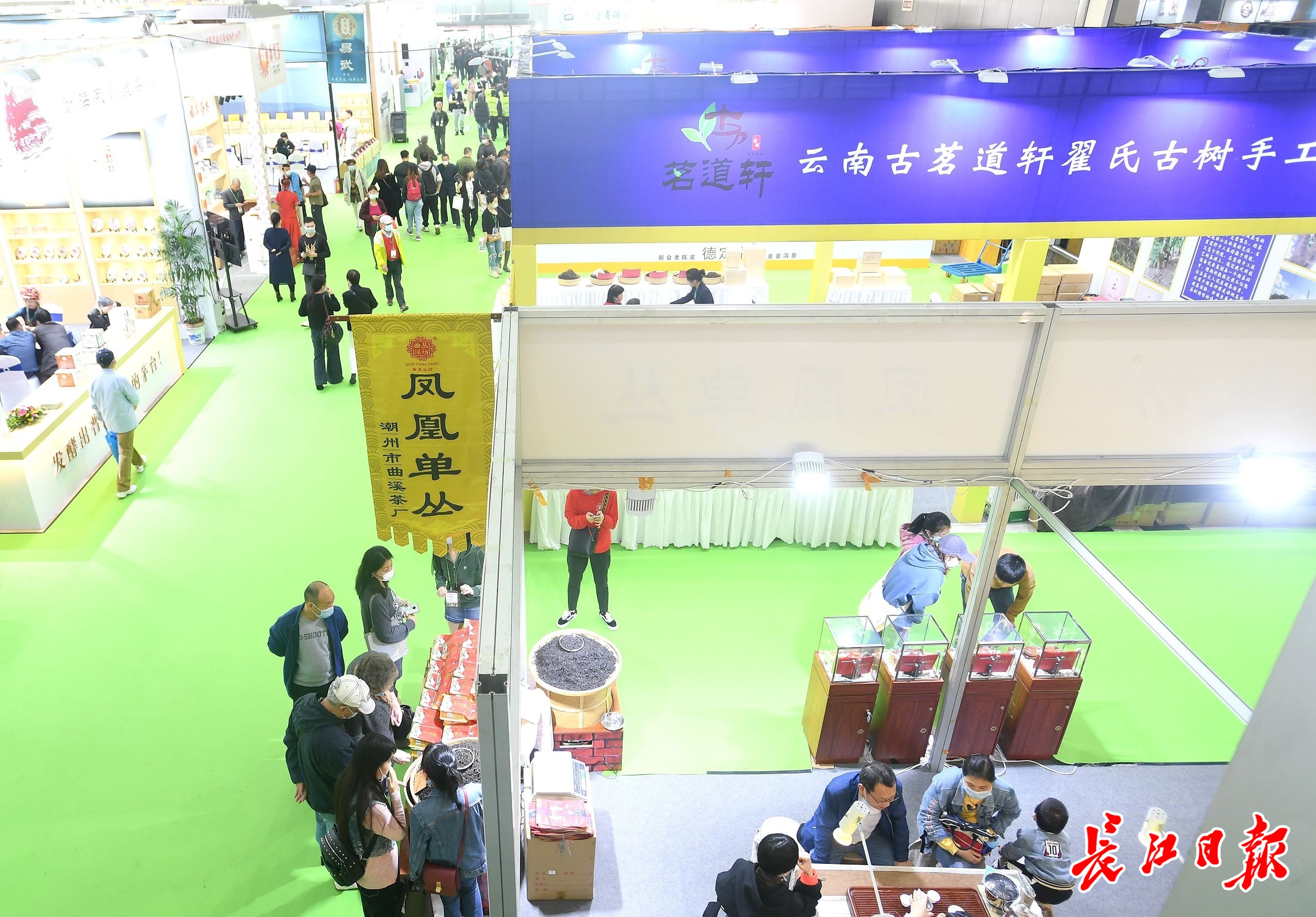 长江网10月22日讯 2020年10月22日上午,第九届武汉茶博会在武汉国际会展中心开幕,本届茶博会规划了全国名茶区、黑茶/普洱茶区、白茶区、茶器美学区、紫砂区、茶具区六大展区,展览展品多达数十万件。全国600余家品牌茶企厂商带来了全品类茶叶,让武汉茶友在家门口品尝到各类名茶。茶博会将于25日闭幕。