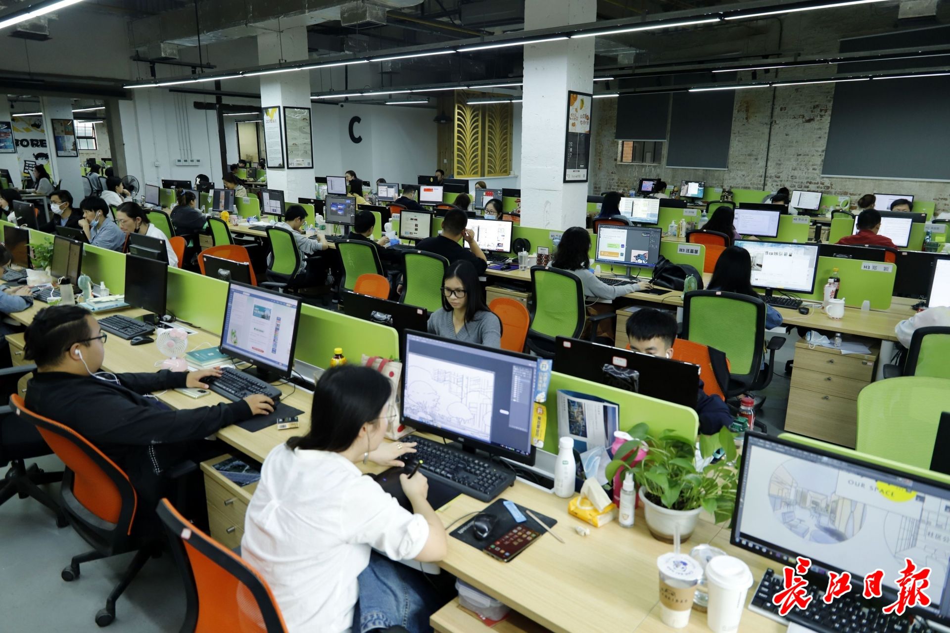 入驻多牛世界时尚创意产业园的人人视频,拥有1700平方米办公面积,放眼望去,一张张年轻的面孔朝气蓬勃。