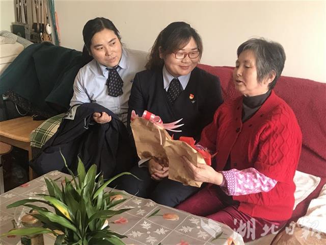 湖北日报讯(记者黄磊、通讯员李立、晏杰)“谢谢你们总记着我们,上次送来的月饼很好吃,今天又送来了小点心,太谢谢了!”10月23日,76岁的汪宁婆婆接过H90路公交女司机王金兰和同事送来的点心,眼圈红了。