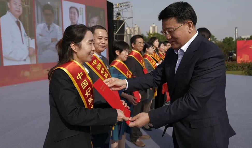 10月23日,武汉,华中科技大学同济医学院附属同济医院中法新城院区,中央文明办、国家卫生健康委主办的“中国好医生 中国好护士”抗疫特别人物发布活动在这里举行。