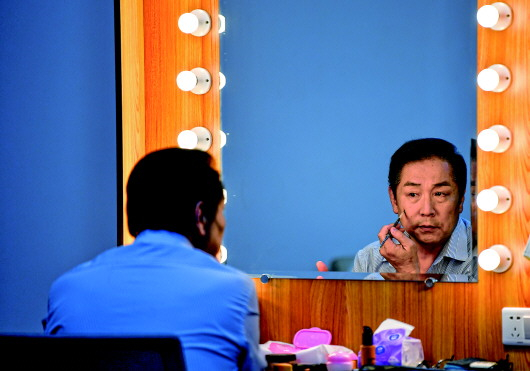 ▲在天津市河西区光华剧院,王继世在化妆间里做准备(9月8日摄)。 新华社发(孙凡越 摄)