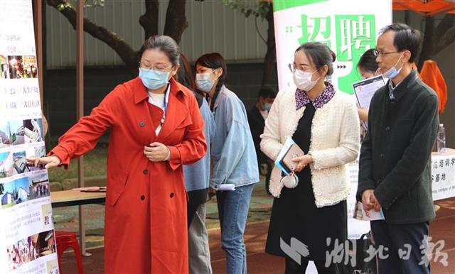 “参与此次学校招聘周活动的企业,分别由湖北省教育厅、武汉市人社局,和武汉市洪山区、青山区、蔡甸区等单位组织,有500多家企业提供岗位1.6万多个,学校2021届毕业生有4300多人,人均3-4个岗位可供选择。”长江职业学院就业指导处处长张晓刚介绍,武汉市人社局组织了200家本土企业参加招聘会,深受大学生们的欢迎。武汉地铁集团一次性在该校选拔了200名毕业生,中建三局的招聘点前也围得水泄不通,100个招聘名额引来众多学生选报。该校药品质量与安全专业的应届毕业生余敏,来自十堰市郧西县上津镇石庙村。疫情期间她在乡村担任志愿者,走村串巷消毒,宣传防疫知识,深深认识到医药专业的价值,希望毕业后能在武汉的医药企业就业。这次招聘会上,她终于如愿以偿,选择了武汉宏韧生物科技公司药品质量控制岗位。