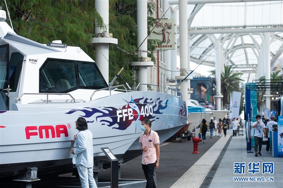 10月30日,与会者在第十届中国(澳门)国际游艇进出口博览会上参观。 近日,第九届澳门公务航空展、第十届中国(澳门)国际游艇进出口博览会和第十届中国(澳门)国际汽车博览会在澳门举行。 新华社记者 张金加 摄