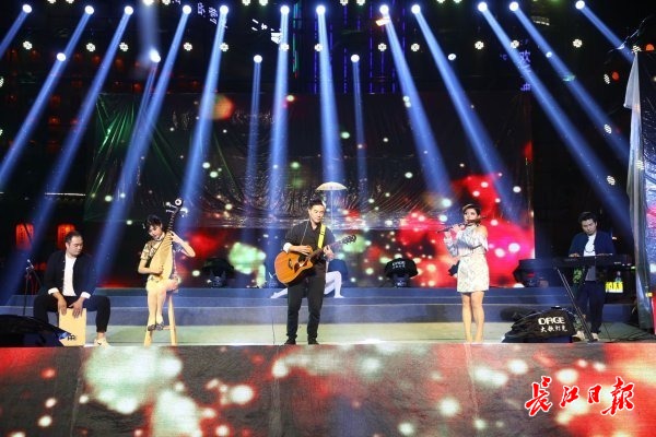 紧接着,武汉独立音乐人莫小添带来动人情歌《弹弹情》;“90后”乐队表演创意合奏《时光穿梭机》,用吉他、竹笛、卡洪鼓、琵琶等不同的乐器演绎怀旧曲风,带着观众穿梭于不同年代;吉庆街艺人陈媛媛用葫芦丝带来《风儿吹来了》,曲声婉转悠扬,吹进人们的心坎里。