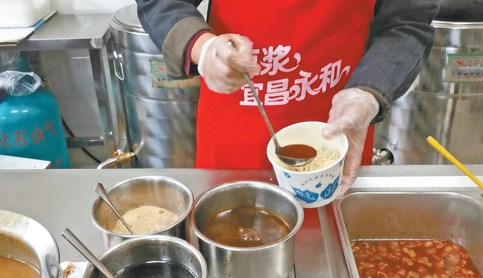 江夏区大花岭街南车花园小区门口的早餐店内,工作人员正在制作“小碗面”。长江日报记者刘海锋 摄